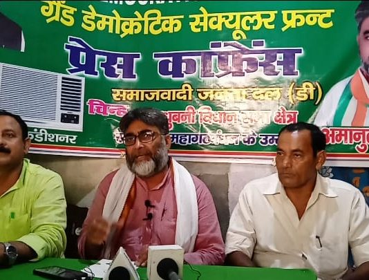 मधुबनी विधानसभा से ग्रैंड डेमोक्रेटिक सेक्युलर फ्रंट के उम्मीदवार अमानुल्लाह खान ने प्रेस को किया संबोधित।